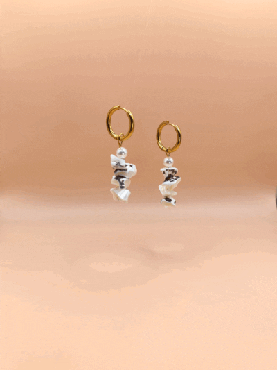 Handmade Earrings With Shell Chips And Pearls, On A Stainless Steel Pin