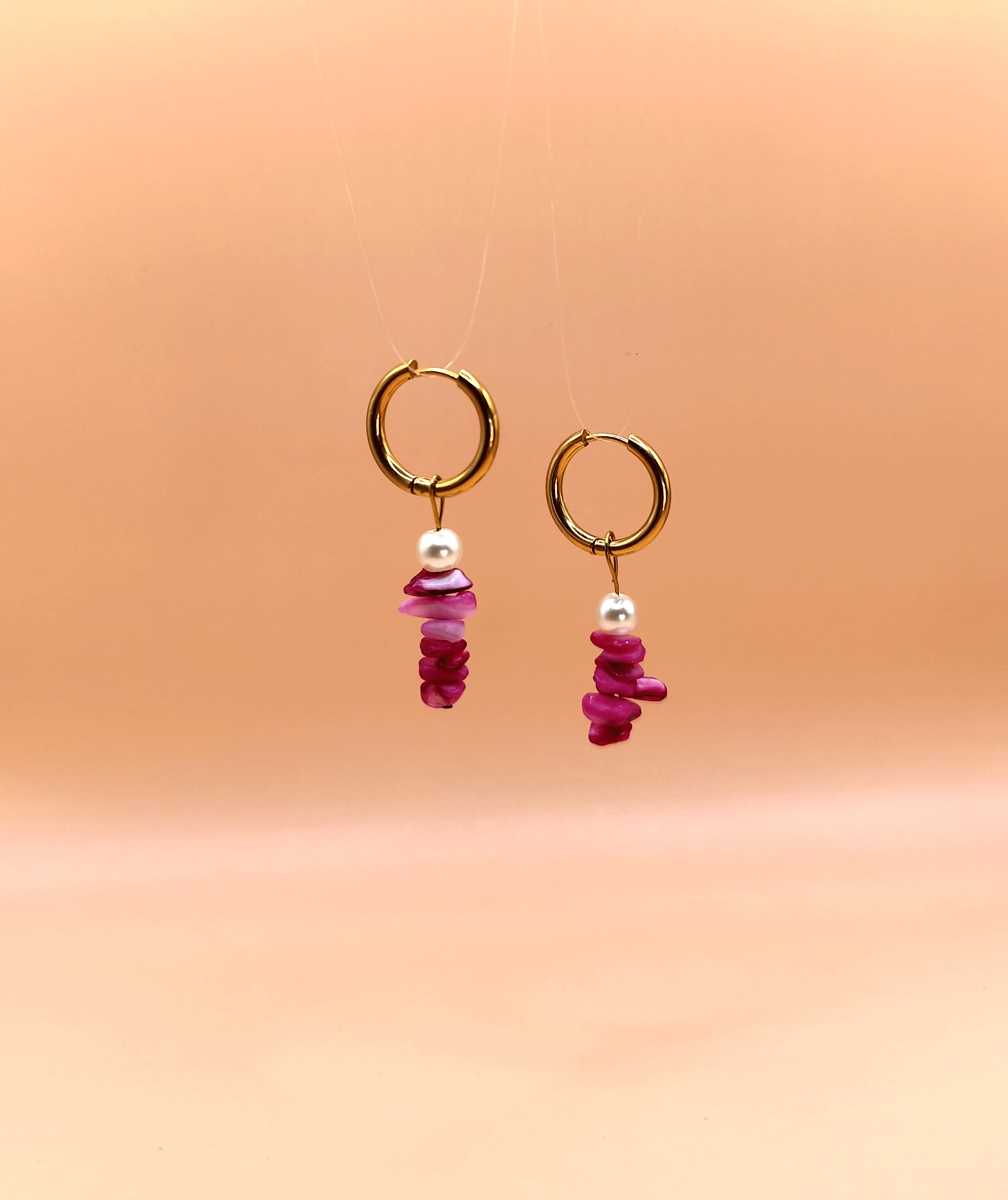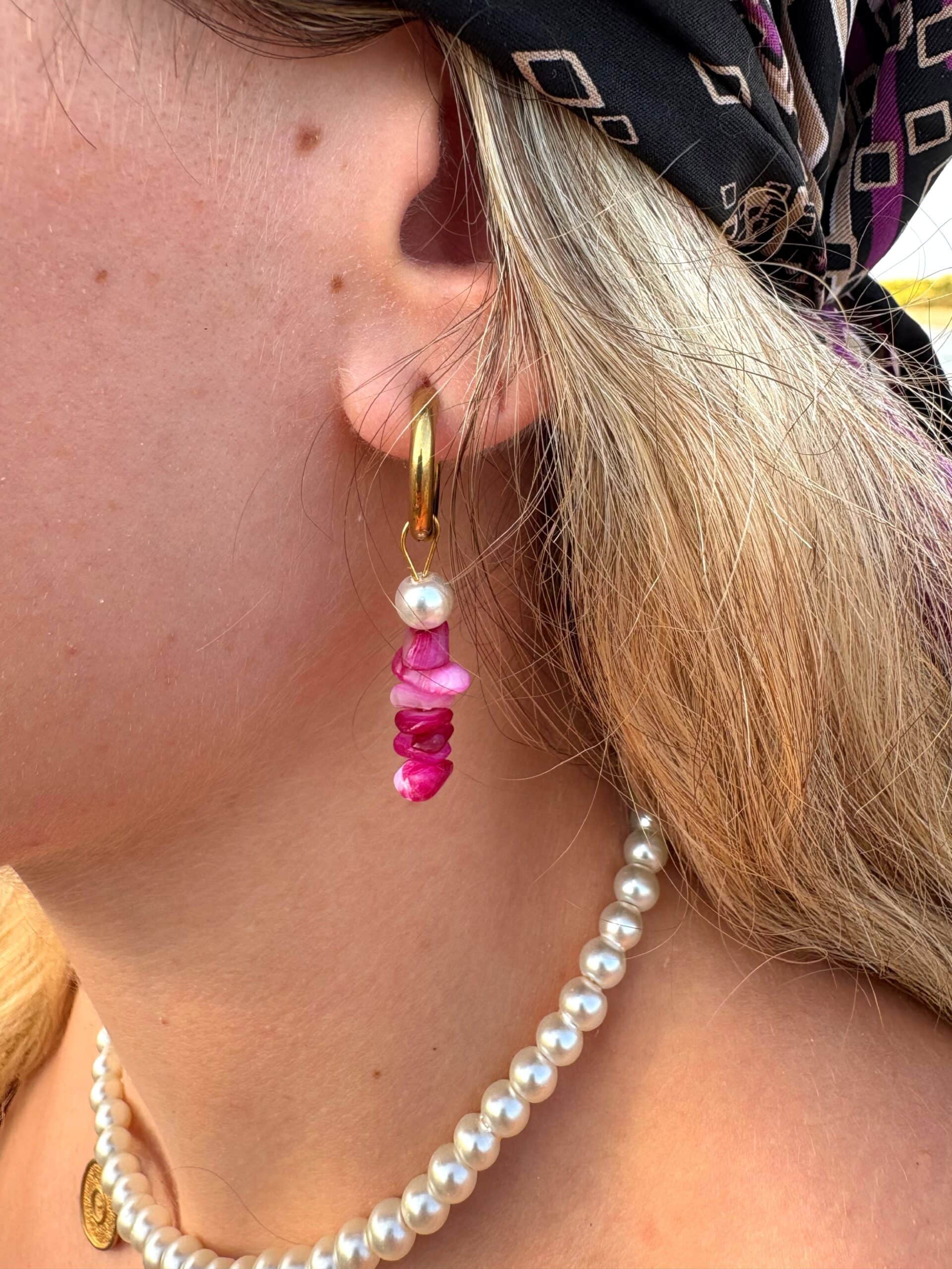 Handmade Earrings With Shell Chips And Pearls, On A Stainless Steel Pin