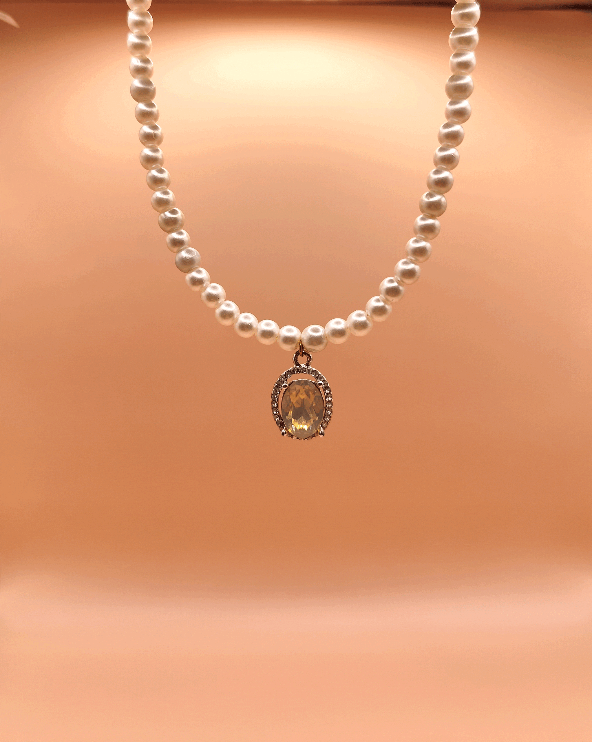Handmade Necklace With Pearls Combined With Cute Little Lemon Beads, On A Stainless Steel Wire